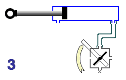 A straight part, in this case the cylinder, is attached to a wheel with a pin. The other end of the straight piece is fixed or slides along a fixed point.