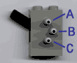 Given the travel and the minimum length of the straight part, the other details can be arrived at. In this model, we are using a cylinder. The cylinder has a minimum length of 6 SW(Stud widths) and a travel of about 3 SW. This would require the distance of A to B to be about 1.5 SW. Looking at possible attachment distances for some common parts, I picked a 40t gear. This gives slightly more travel than required on one side but seems to work without problems.