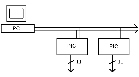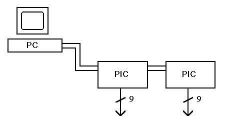 The PC sends a command out to the first PIC. The PIC checks if this command is meant for it. If not, it passes it on to the next PIC in line.